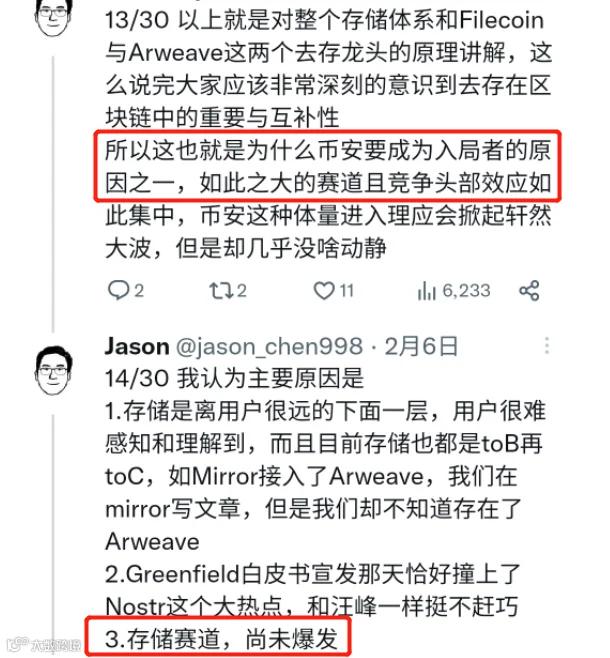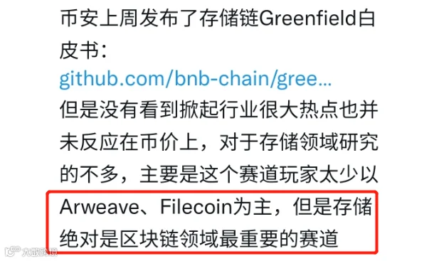 区块链领域,分布式存储是最重要的赛道之一,以Filecoin和AR等几个玩家为主,现在加上币安的BNB Greenfield。