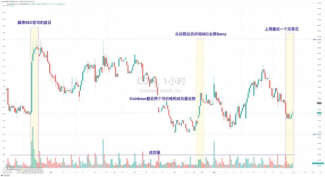 v. 如果10月17号晚间关于比特币现货ETF的申请全部推迟,那么盘面会结束趋势,调头下行。根据过往经验,如果有关于SEC对现货ETF申请的内幕,Coinbase的股价是最能反映情况的。