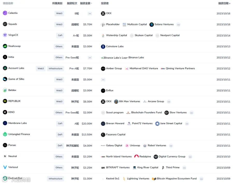 一级市场融资数量与金额有一定回升,但缺少优质项目。Celestia获得OKX的B轮融资,能否引起整个赛道的热潮有待观察。
