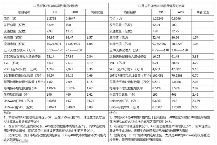 Optimism和Arbitrum项目数据对比