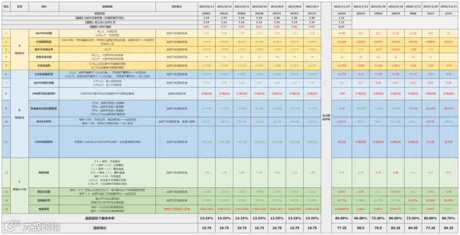 本周时间内整体市场行情回调下跌,但指标依然处于较低分值,未有入场机会。