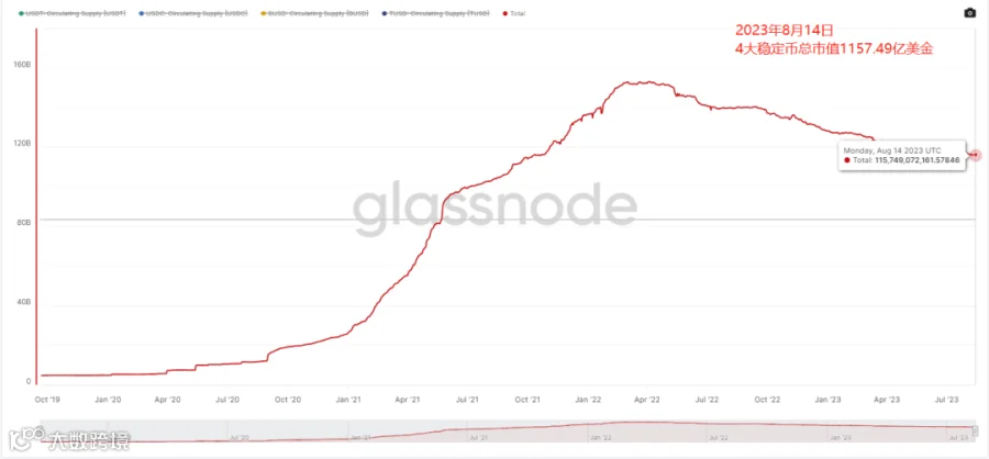 2. 四大稳定币总市值目前为1157.49亿美元,相比上周的1163.29亿美金再次下降约5.8亿美金。