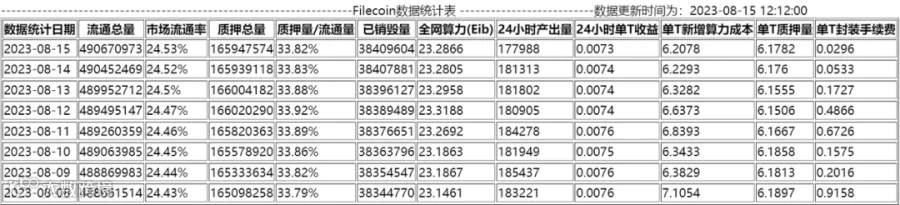 单日每T产币量:0.0074FIL(↓)