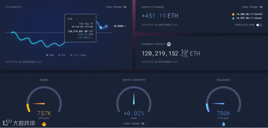 f. 本周由于链上交易继续下降,gas销毁数量也较少,gas费用一直持续较低水平。目前以太坊再次呈现通胀状态,本周累计增加ETH数量451个。本周链上gas销毁最多的三个项目依旧是:Uniswap、链上转账以及USDT铸造和销毁。