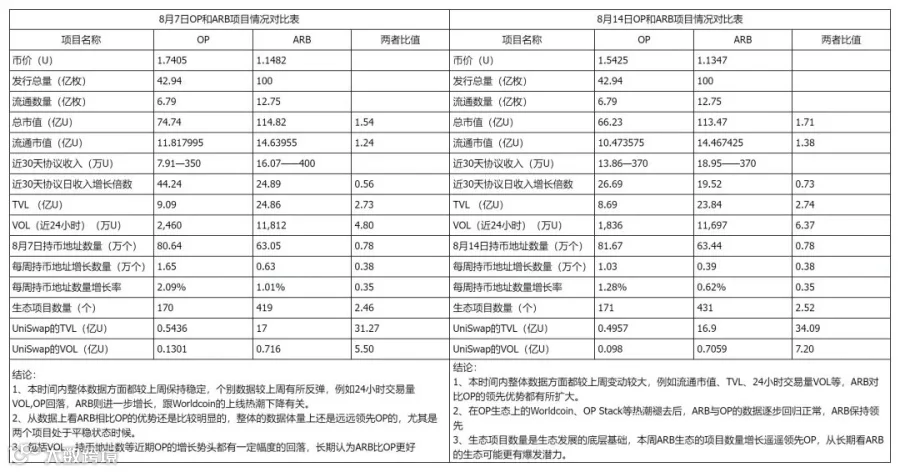三、Optimism和Arbitrum数据对比分析