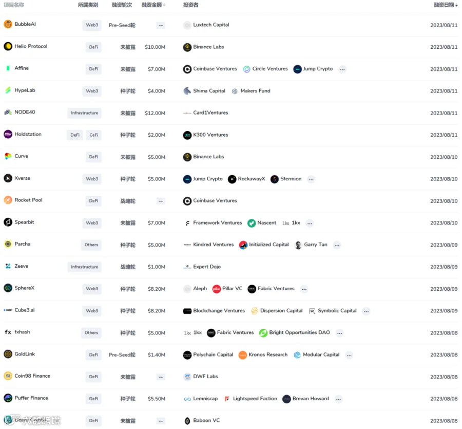 2023 年 8 月 8 日- 8月14日 总交易量:17.7 亿美金(↓)