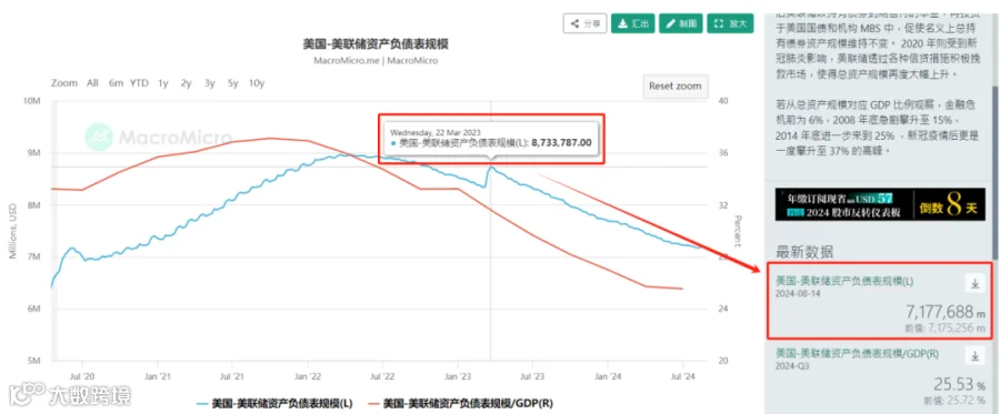 71,752.56亿(8月7日)→ 71,776.88亿(8月14日),单周缩表24.32亿 ;