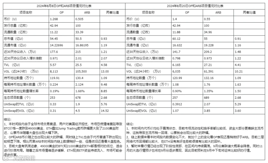 三、Optimism和Arbitrum数据对比分析