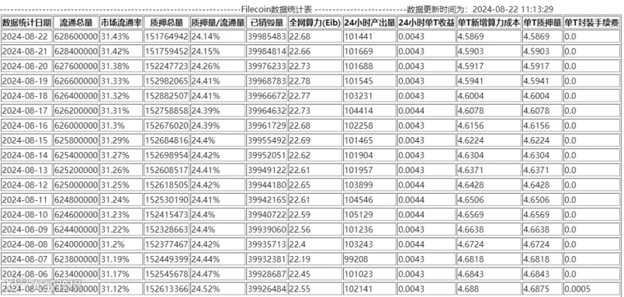 单日每T产币量: 0.0044FIL