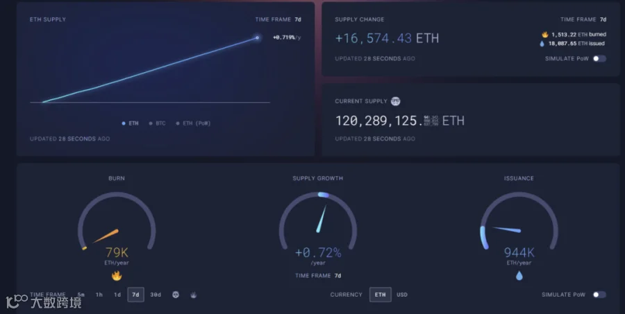 ii. 本周ETH主网呈现通胀,7天年通胀率为0.72%。