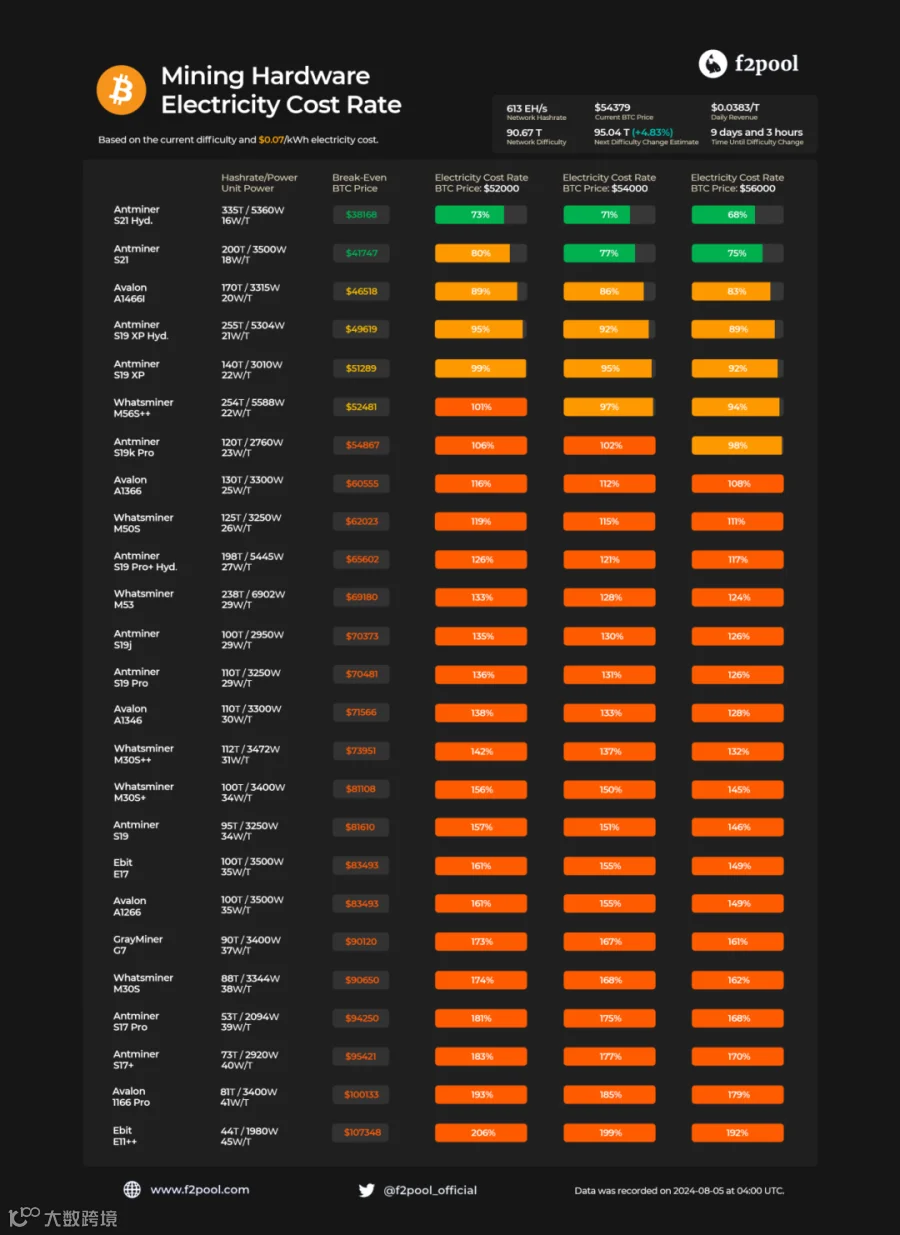 目前BTC价格依旧低位震荡,大部分矿机处于关机币价边缘。挖矿回本周期普遍2年以上,预计行情在低位继续震荡一段时候后将开启牛市上涨。