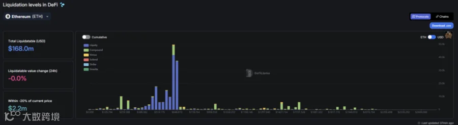 ii. 去中心化交易所方面,ETH在648开始有大额清算,在648至519为密集清算区,623为最大清算点。