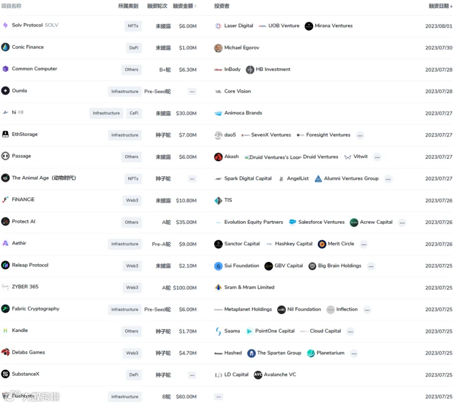 六、市场投融资信息
