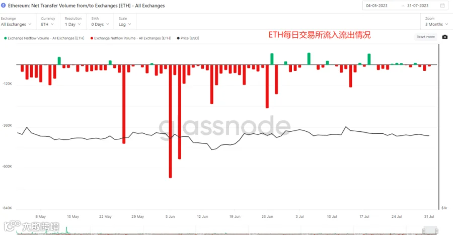 e. 从交易所库存量上来看,本周BTC交易所库存有所增加,ETH的交易所库存趋于稳定。不过市场流动性方面依旧短缺,交易所交易量仍然低迷。这从每日交易所资金流向也能看出,大额的流入流出主要集中在一周内的某一天,其余时间均呈现低量状态。