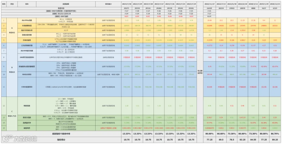 b. 虽然本周时间内整体市场行情回调下跌,但指标依然处于较低分值,未有入场机会。