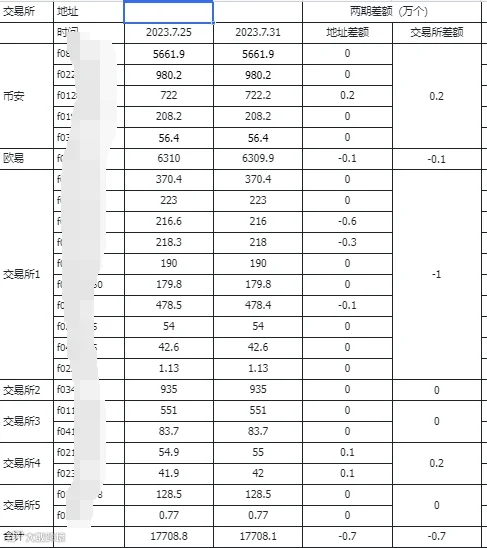 交易所地址:7 月 25 日到 7 月 31 日共流出 0.7 万个。