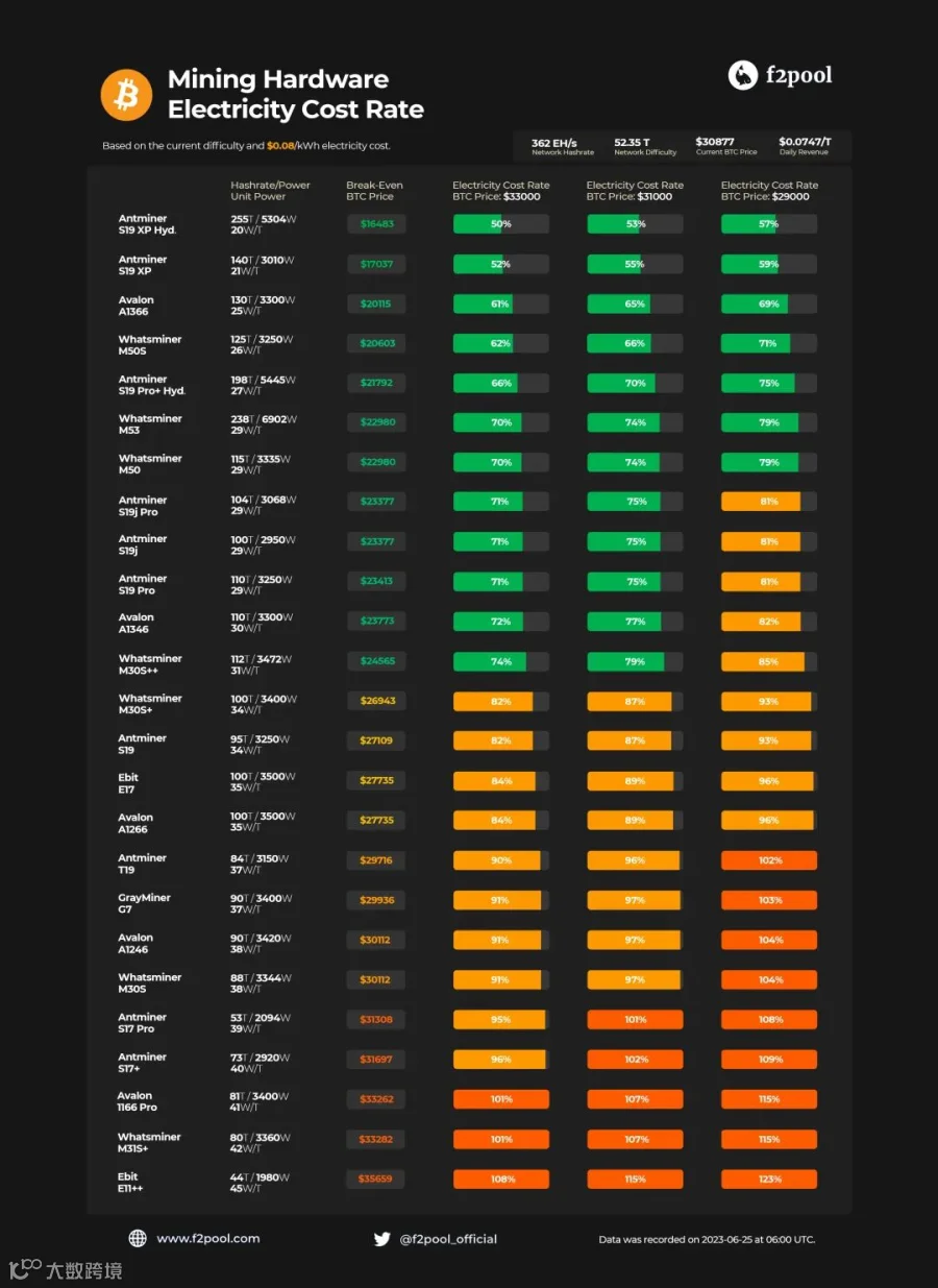 结论:随着BTC价格持续窄幅震荡,BTC最高触及30099美金,最低触及28861美金,矿机市场整体还处于底部区间,币价窄幅震荡,市场处于方向选择中。