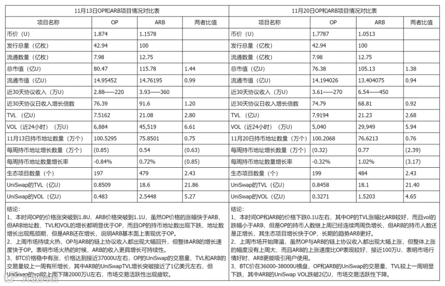 三、Optimism和Arbitrum数据对比分析