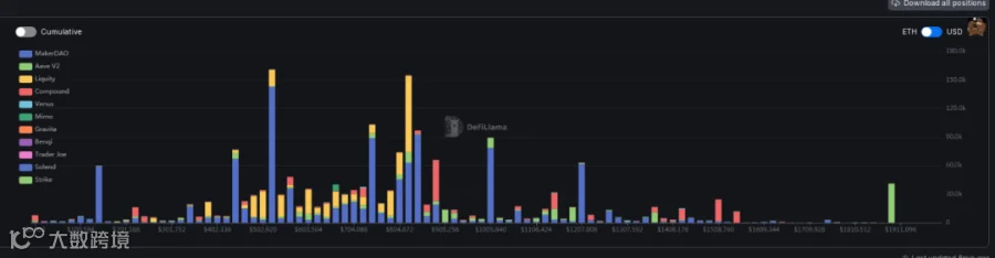 ii. 去中心化交易所方面,ETH在1911开始有大额清算,在905至402为密集清算区,523为最大清算点。