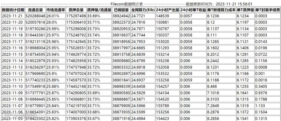 单日每T产币量: 跌破0.006FIL