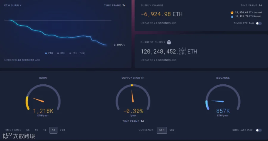 ii. ETH开始通缩,目前为第二周,7天年通胀率由-0.47%降至-0.3%。