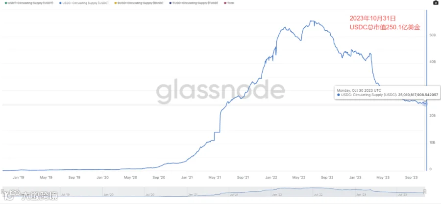 截至10月26日,USDC总流通量为250亿美元,储备量为252亿美元,其中现金16亿美元,Circle Reserve Fund持有236亿美元。