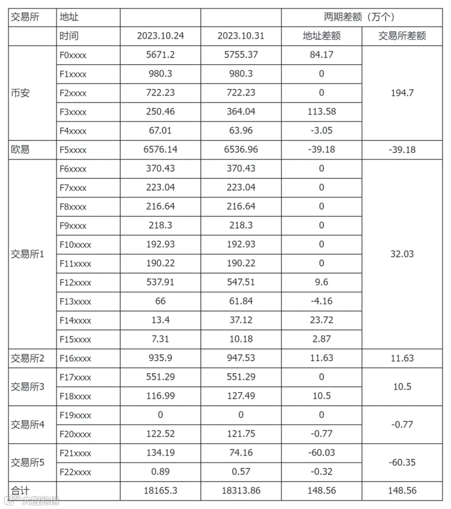 交易所地址:10 月 23 日到 10 月 31 日共流入 148.56 万个,较上周增加近148万枚,BTC价格在35000附近持续震荡,可能构成潜在抛盘。