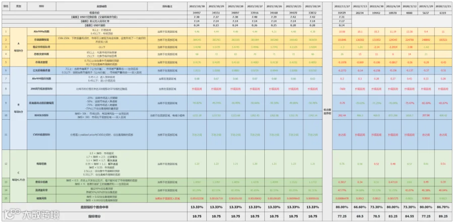 本周时间内整体市场行情回调下跌,但指标依然处于较低分值,未有入场机会。
