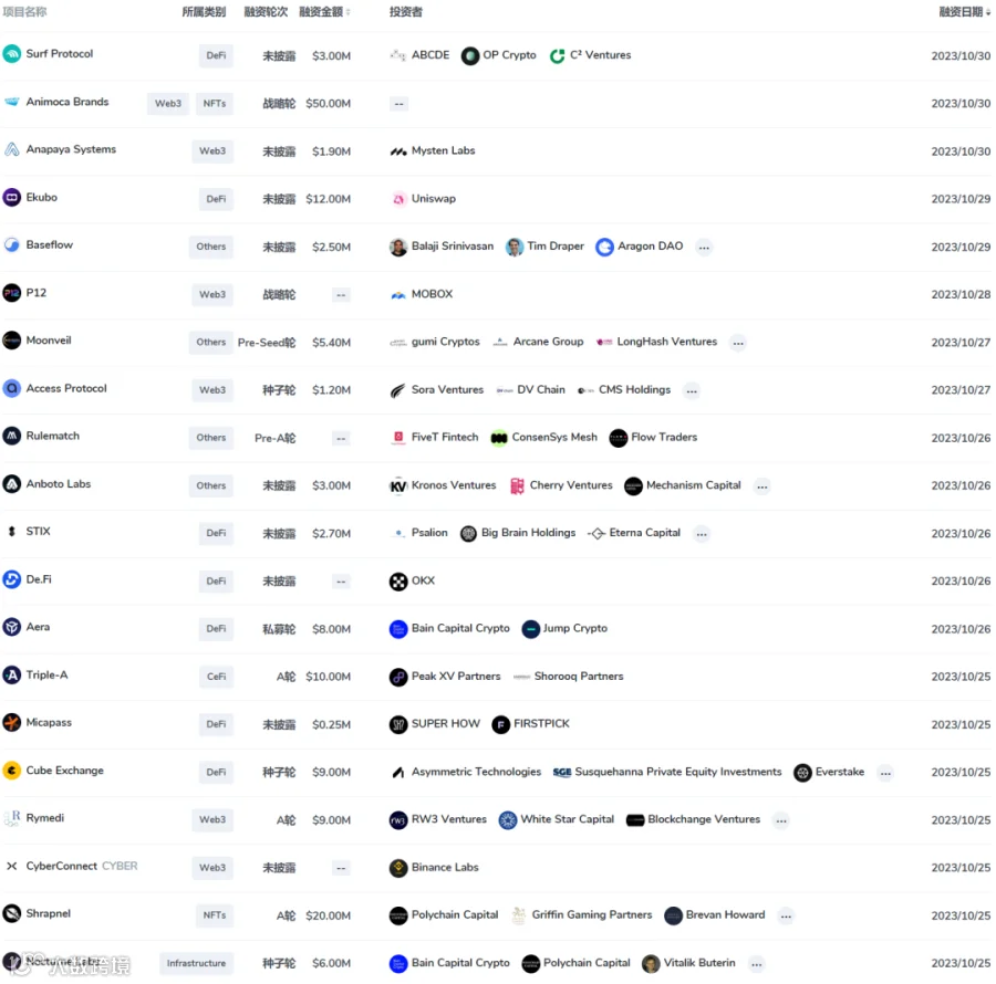 一级市场融资数量与金额受BTC大涨影响,出现了数笔近千万美金的融资,表明机构对明后年的牛市有信心。