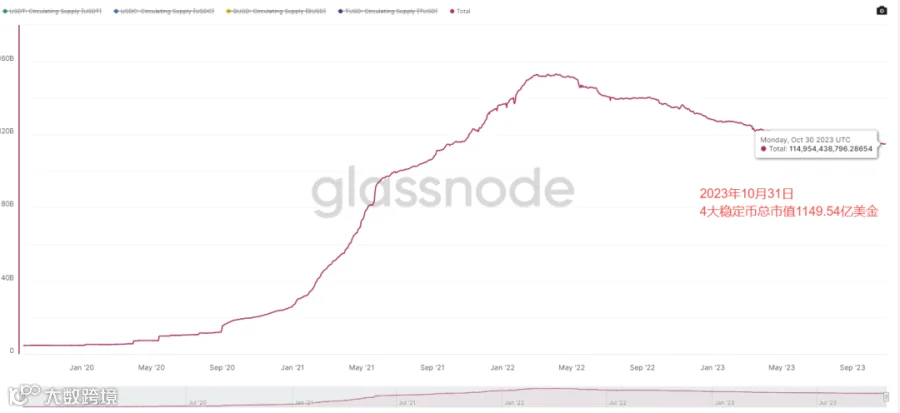 2. 四大稳定币总市值:1149.54亿美元(↓),较上周减少1.5亿美金。