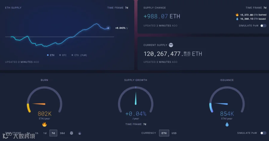 ii. ETH连续8周保持通胀,7天通胀率年化由0.31%下降至0.04%。