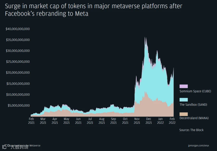 2 月 15 日,摩根大通发布了一篇名为「Opportunities in the metaverse」的研究报告(本文是速读翻译版本,译者有删减),探讨企业如何在元宇宙中寻找机会,全面论述了企业如何探索元宇宙并驾驭炒作和现实——未来几年,元宇宙可能会以某种方式渗透到每个行业,对应市场机会的年收入估计超过1万亿美元。