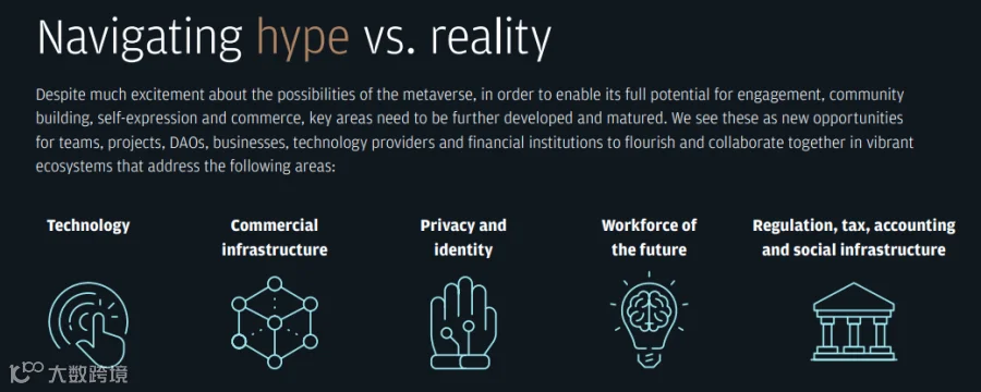 支持商业和元宇宙经济的一些关键因素仍然需要确定和扩展,包括: