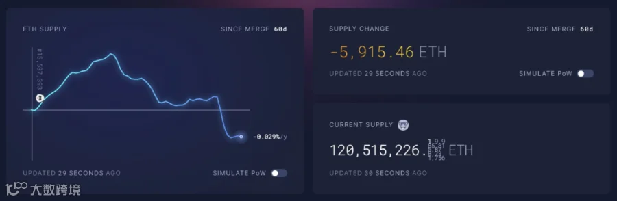 在以太坊60天之际,根据ultra sound money提供的数据显示,以太坊网络已经减少了5915.46ETH的发行量,已经处于通缩状态。可一起来看看此前期待的EIP1559+POS低通胀带来的“3倍减半/通缩”到底起效了没有?