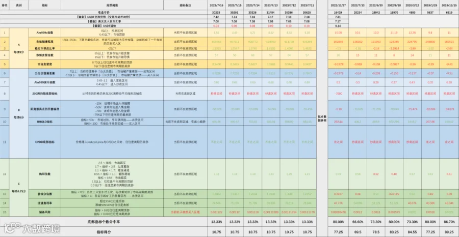 本周时间内整体市场行情回调下跌,但指标依然处于较低分值,未有入场机会。(详见下文)