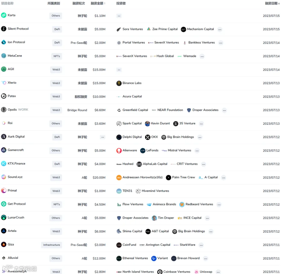 结论:相较之前,本周融资规模和融资数量呈现增长,窄幅震荡行情中一级市场的项目融资情况波动较大,整体看好后市。