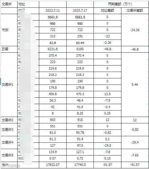 交易所地址:7 月 11 日到 7 月 17 日共流出 91.57 万个。