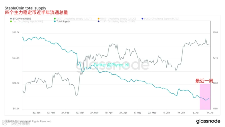 截止7月16日,过去7天Circle共发行13亿美元USDC,赎回14亿美元USDC,流通量减少1亿美元。