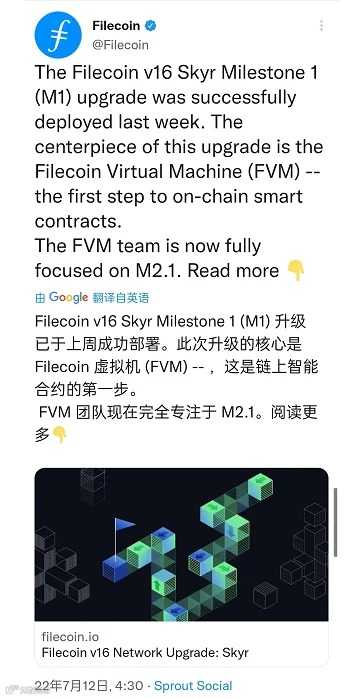 Filecoin v16 Skyr 升级 - 将 Filecoin 虚拟机的 Milestone 1 部署到 Filecoin 网络,于 7 月 6 日星期三 1400 UTC 成功完成。
