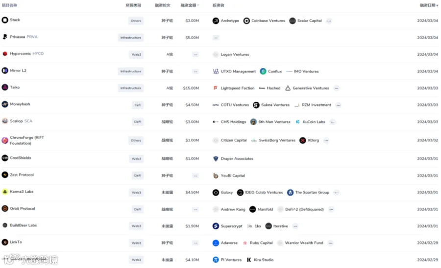 随着BTC价格持续走高,市场情绪空前高涨,一级市场融资规模和数量大大增加。