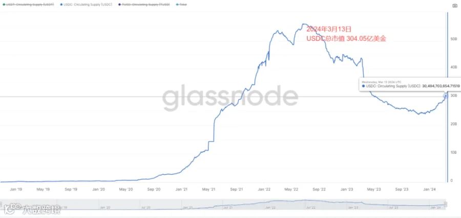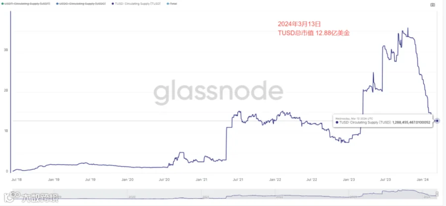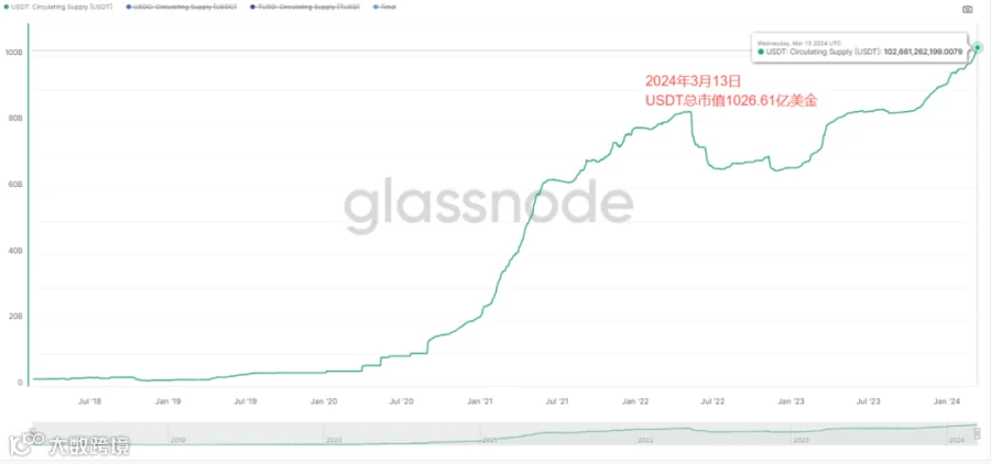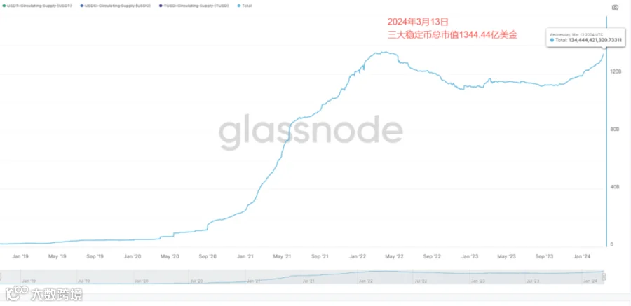 USDT总市值达到1026.61亿美金,USDC总市值增加到304.05亿美金,TUSD市值维持在12.88亿美金。