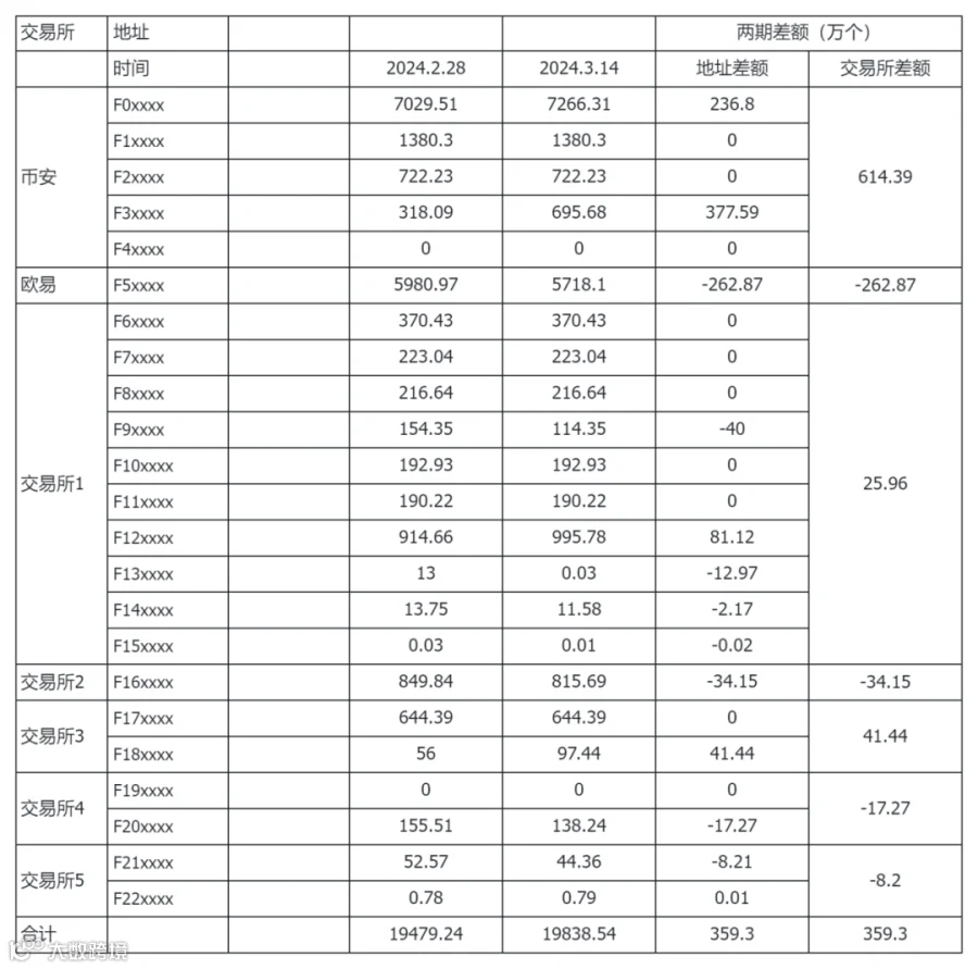 交易所地址:2 月 28 日到 3 月 14 日共流入359万个
