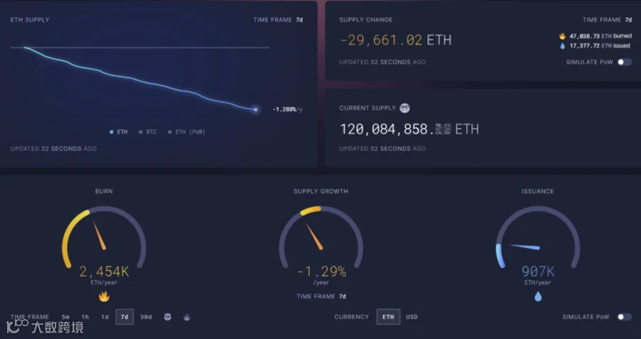 ii. ETH主网呈现通缩,7天年通胀率为-1.29%。