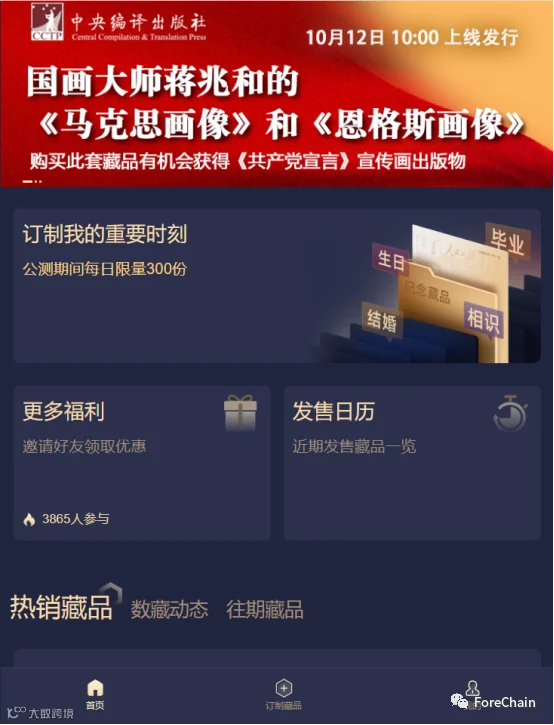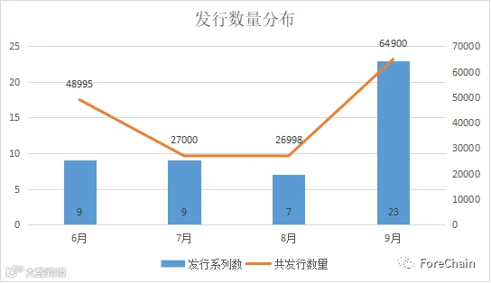 因为肩负着文化宣传的责任,因此这些平台的藏品价格定位都较低,大多集中在百元以下的价位,且很多藏品的发行方式都是免费投放,这样可以让更多的人参与其中。同时,因为这些平台有比较可靠的背景,也会有更多的需求,在发行数量方面也都较大,基本在千份以上,个别系列更是在万份。