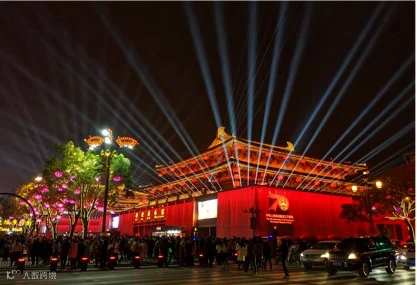 大唐不夜城是由西安曲江文化产业投资集团全资打造,位于陕西省西安市大雁塔,总建筑面积65万平方米,是全国三大步行街之一,日人流量达到20万人,一年人流量达到近1亿人次,相当于30个旅游景点景区的集合。是西安游客必打卡的景点,孵化了像不倒翁小姐姐这样千万粉丝、百亿流量的网红IP,在抖音等短视频平台有极高的传播量。