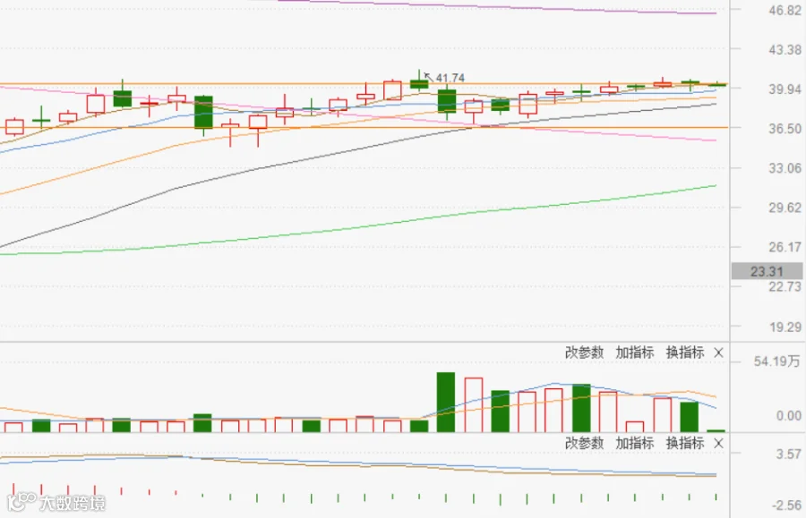 保持40美金一带震荡,下方多条均线具有支撑作用,量能不能有效放大导致价格未能进一步上升,暂时观望为主。