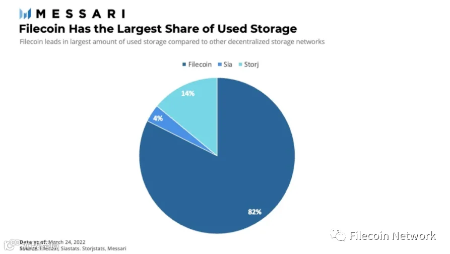 Filecoin在公开的全球市场上提供分布式存储和云服务。从已使用的存储和网络能力来看,它占据了最大的市场份额。