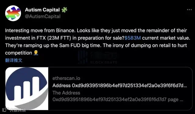 FTX 的「死敌」Binance 已将自己账上剩余价值 2300 万美元的 FTT 转移至交易平台