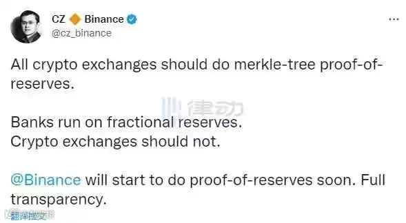 交易平台都应该做默克尔树储备证明。银行依靠部分准备金运作。加密货币交易平台不应该如此。Binance 将很快开始进行储备证明,完全透明。