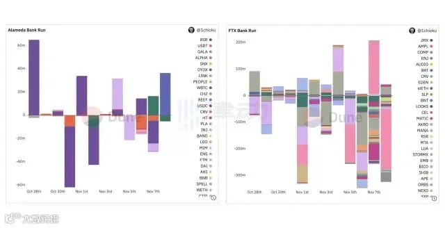 短短一天内,受社区信息和 Binance 出售 FTT 引发的连环效应,已经有近 10 亿美元的资产从 FTX 和 Alameda 的相关钱包地址流出。